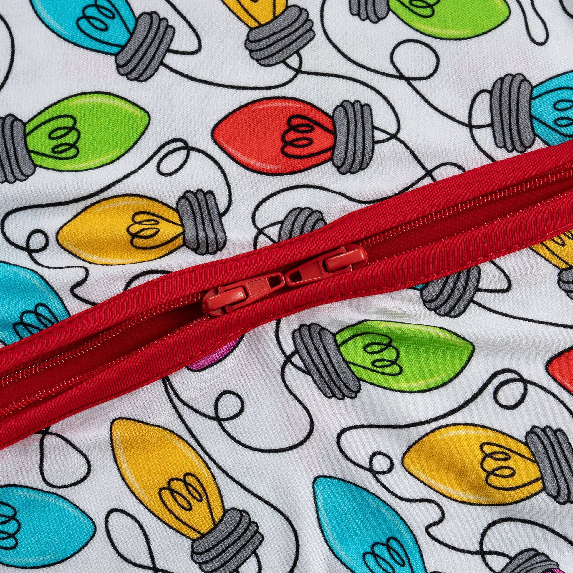 Wrap your little ones in the comfort of premium bamboo with our Christmas Lights Baby Sleeper. Crafted from incredibly soft bamboo fabric, this festive sleeper feature a cheerful holiday light string design that captures the magic of the season. Also, has convertible cuffs and 2 way zipper. Perfect for family matching moments, this set combines breathable, temperature-regulating material with playful holiday style. Ideal for cozy nights and memorable photos, this durable sleeper is gentle on sensitive skin and built to last through countless washes.